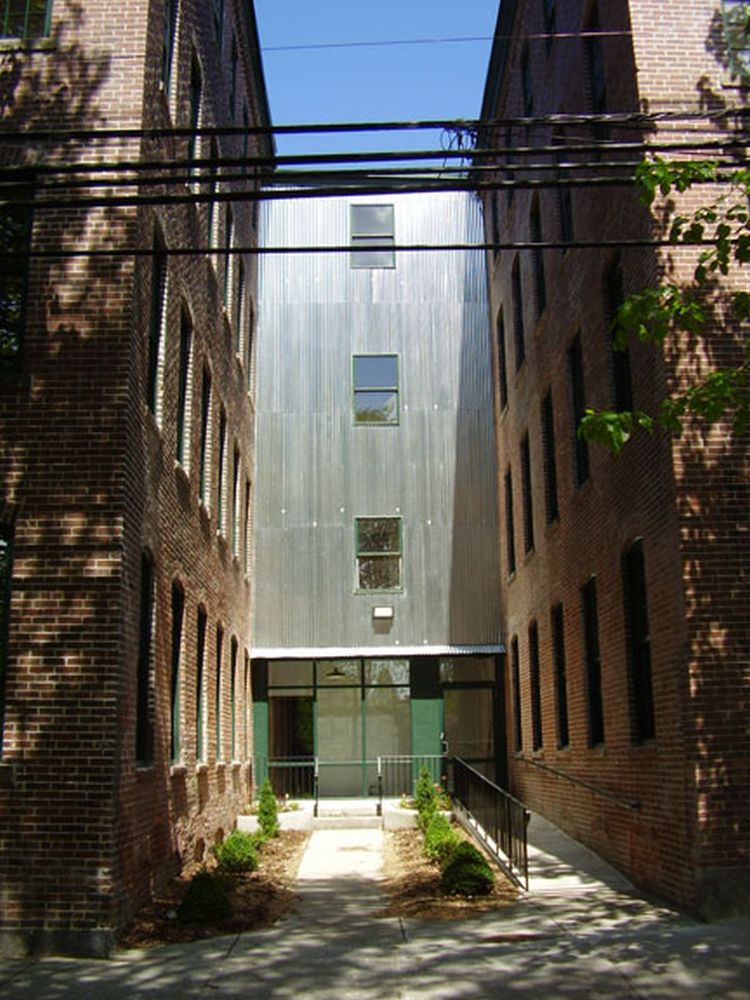 Built circa 1875 for jewelry manufacturer Curry & Richards, this four-story compound in Providence’s historic Pine Street District had been re-purposed many times in the decades that followed. Before restoration by Saccoccio & Associates, the two buildings comprising the mill were in a sad state of disrepair, but slated for conversion to condominiums. Windows were restored or replaced to conform to historic guidelines, masonry was cleaned and re-pointed, and timber elements were reused to enhance the “industrial loft” feel of the 18 living units. This project benefited from Historic Tax Credits.